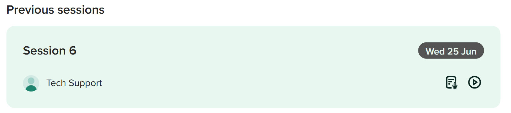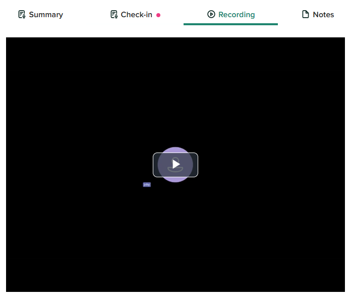 Once on the session page, you will be able to view any related recordings, summaries, notes, and check-in conversations. Simply select the recording tab and, if a video was recorded, click the video to begin playback.